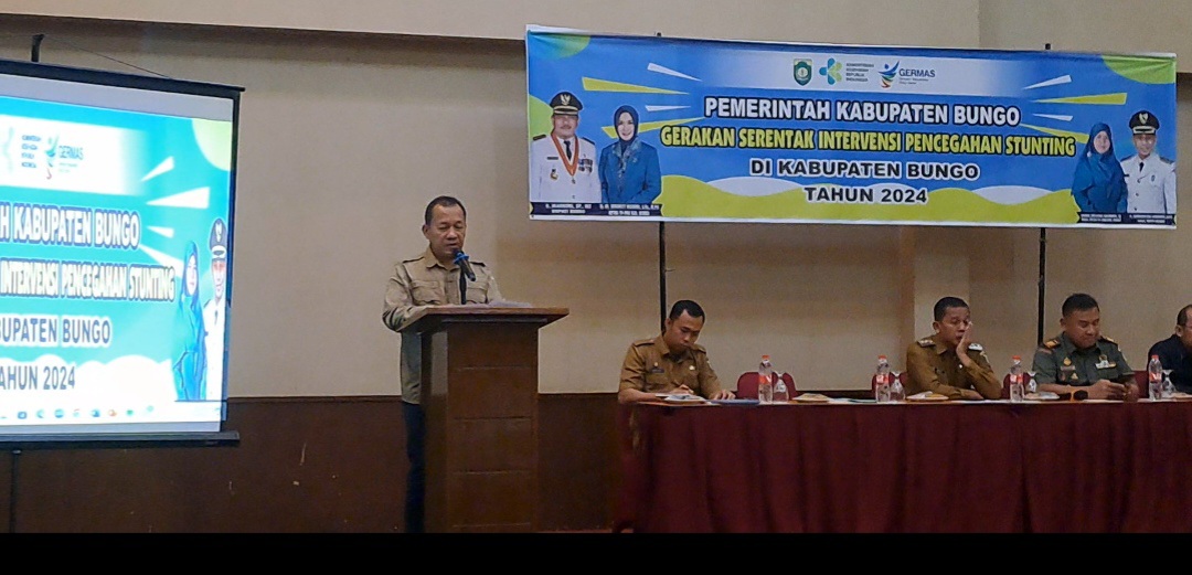 Kabarredaksi.id, Muara Bungo -Dinas Kesehatan (Dinkes) Kabupaten Bungo mengajak seluruh dan lintas sektor untuk mendukung kegiatan Gerakan Serentak Intervensi Pencegahan Stunting tahun 2024 yang dilaksanakan di Hotel Amaris Muaraa Bungo.