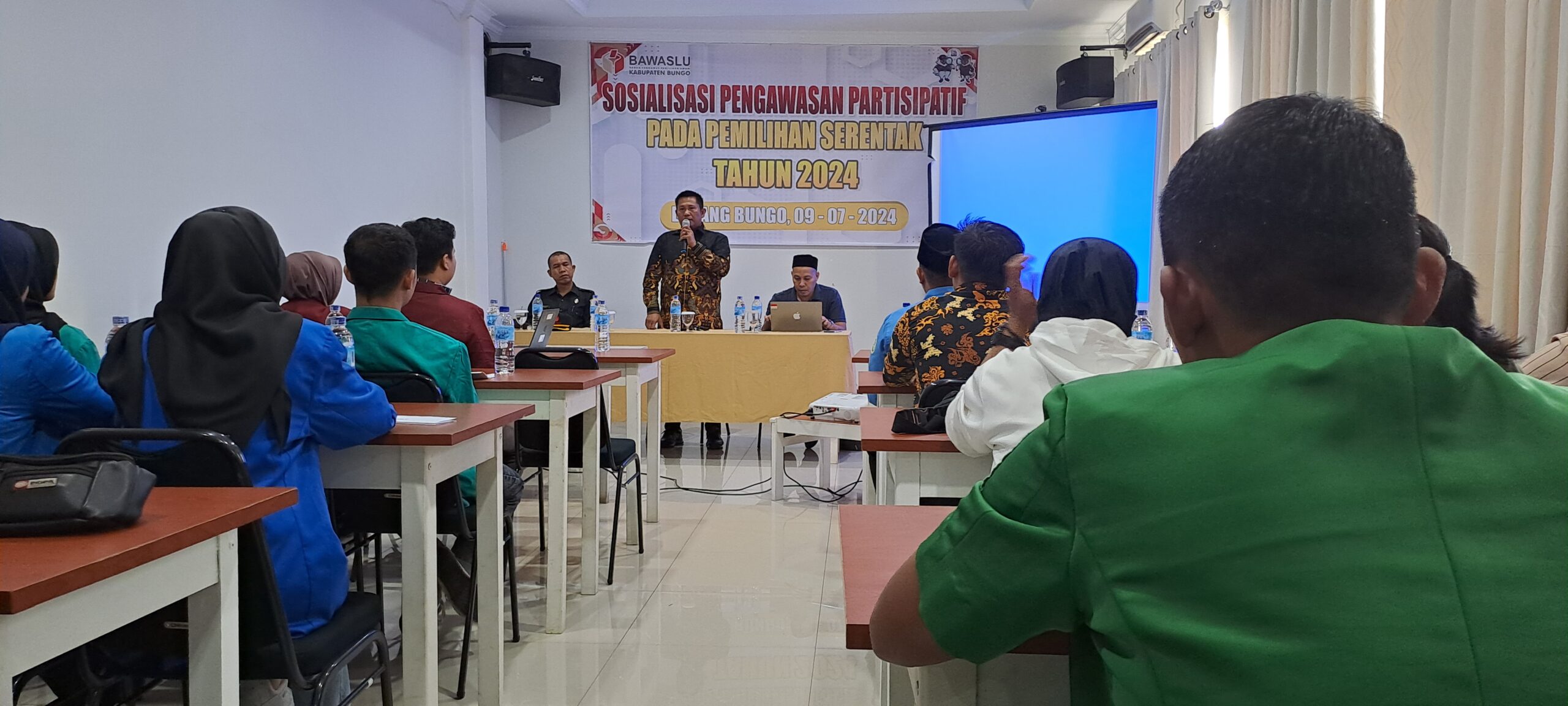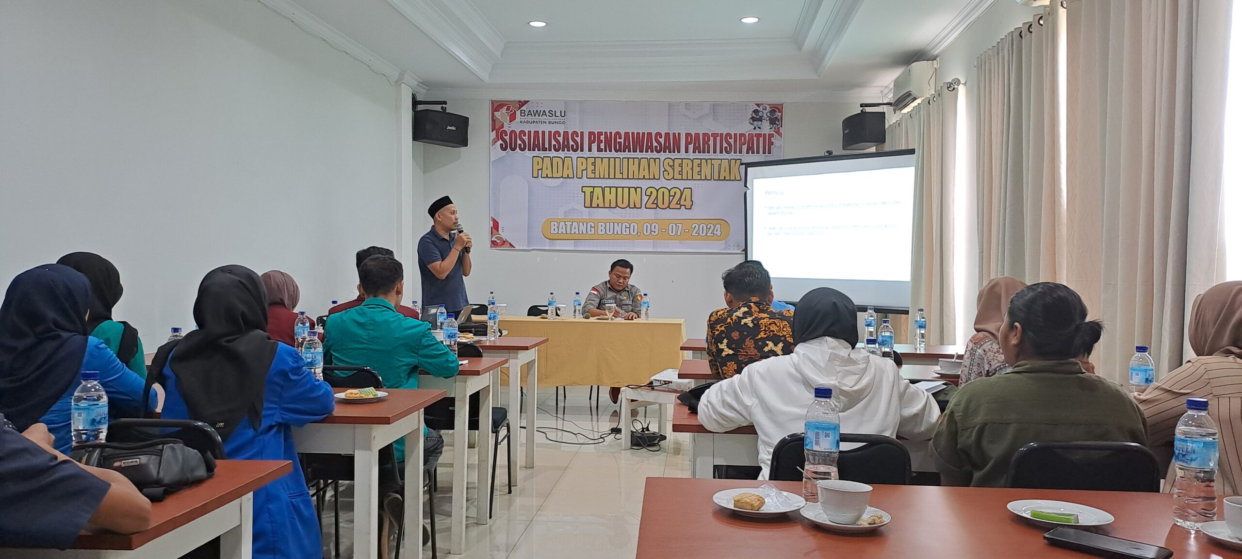 Sosialisasi kali ini mengambil tema” Pengawasan Partisipatif Melalui Gerakan Literasi Digital, dilaksanakan di Hotel Batang Bungo Selasa(09/07/2024).