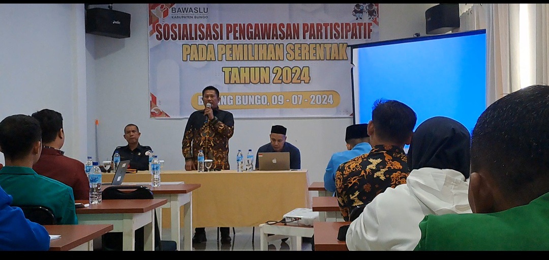 Kabar Redaksi.id.Muara Bungo- Guna suksesnya Pemilihan Kepala Daerah (Pilkada) Serentak Tahun 2024, Badan Pengawas Pemilihan Umum (Bawaslu) Kabupaten Bungo mengelar kegiatan Sosialisasi Pengawasan Partisipatif pada Pilkada Serentak 2024, bersama Jurnalis dan Organisasi Masyarakat, Serta Badan Eksekutif Mahasiswa (BEM ) Se – Kabupaten.