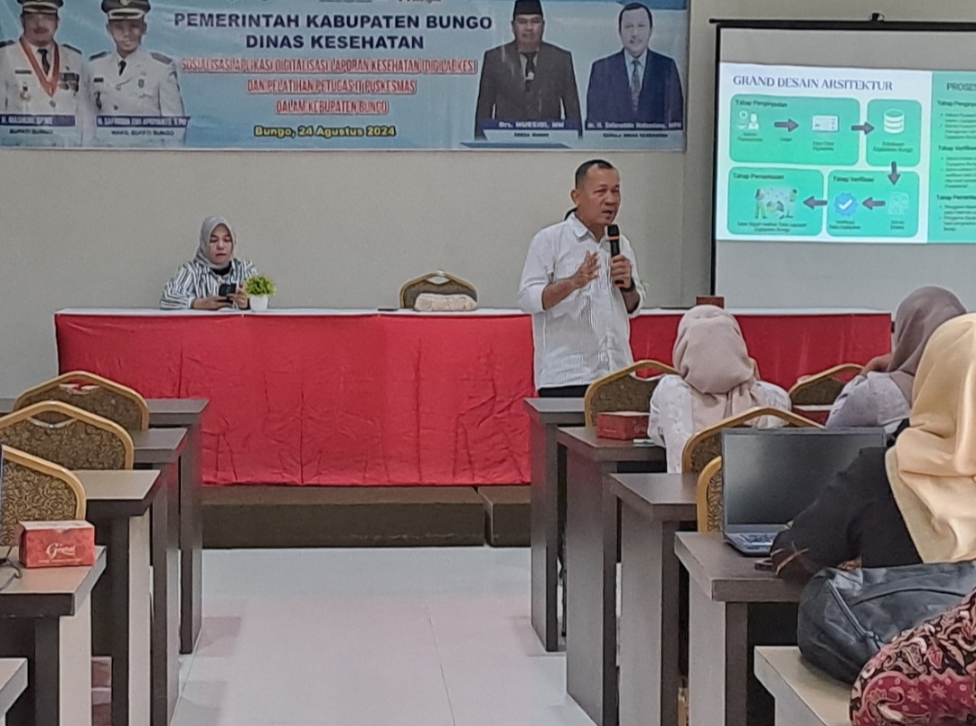 Kabarredaksi.id.Muara Bungo – Dinas Kesehatan Kabupaten Bungo menggelar Sosialisasi Aplikasi Digitalisasi laporan Kesehatan (Digilapkes) dan pelatihan petugas IT puskesmas dalam Kabupaten Bungo.