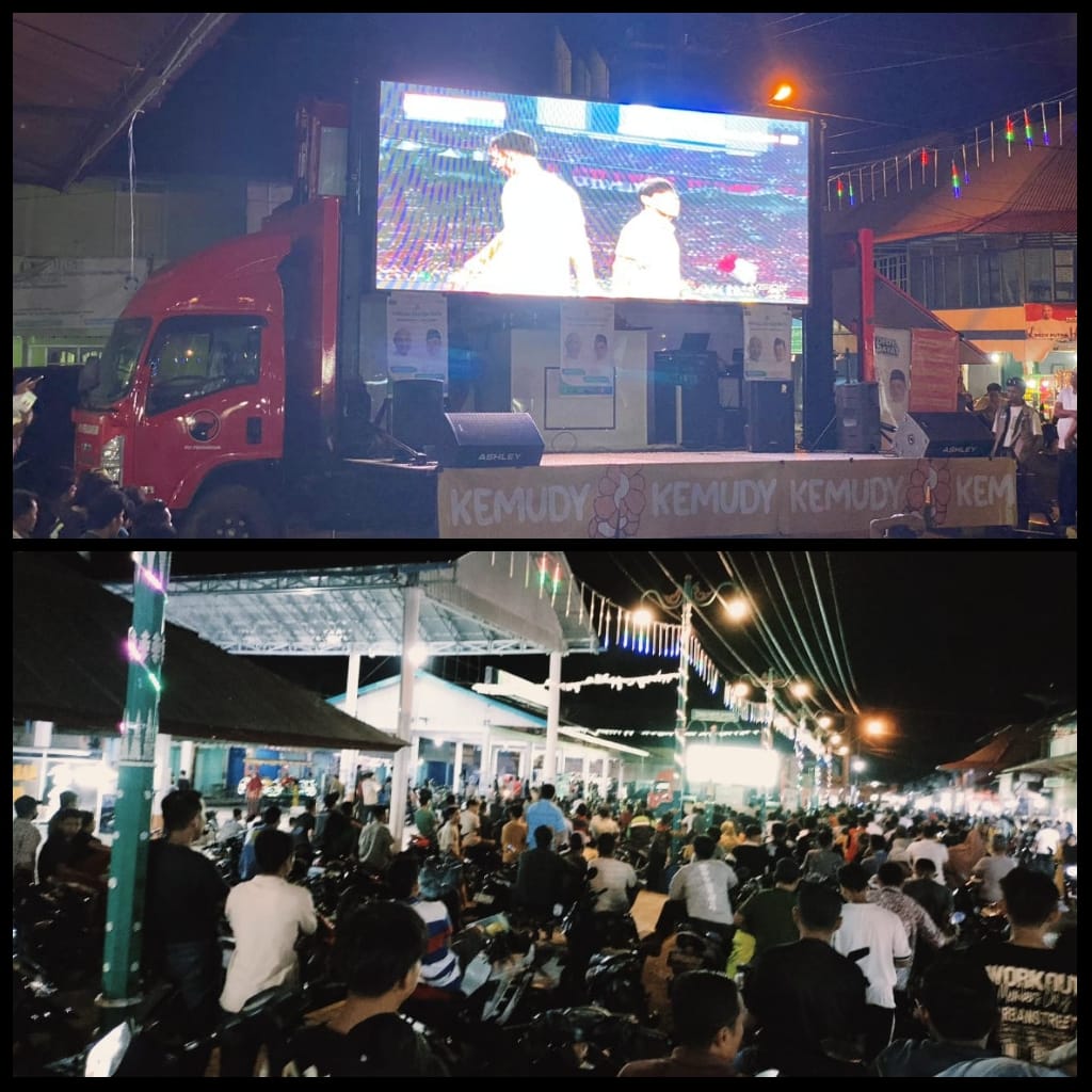 Ribuan warga tampak antusias memadati Pasar Lubuk Landai. Selain nonton bareng, masyarakat dibuat kenal lebih dekat dengan Dedy-Ust Dayat. Baik terkait profil pasangan calon, maupun program-program unggulan menuju Bungo Baru .