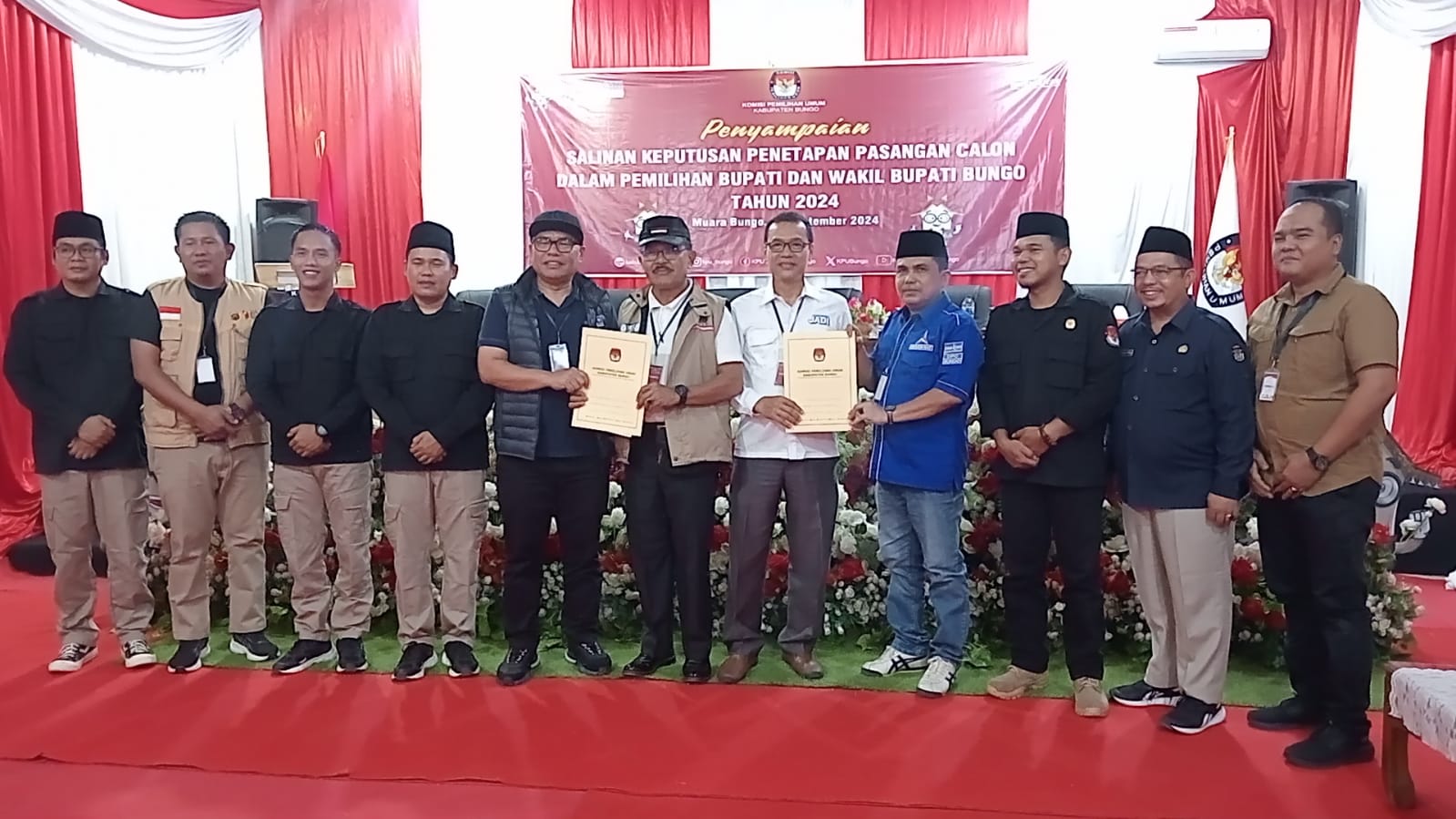 Ketua KPU Bungo , Armidis mengatakan, penetapan tersebut telah melalui berbagai rangkaian pemeriksaan kelengkapan persyaratan calon.