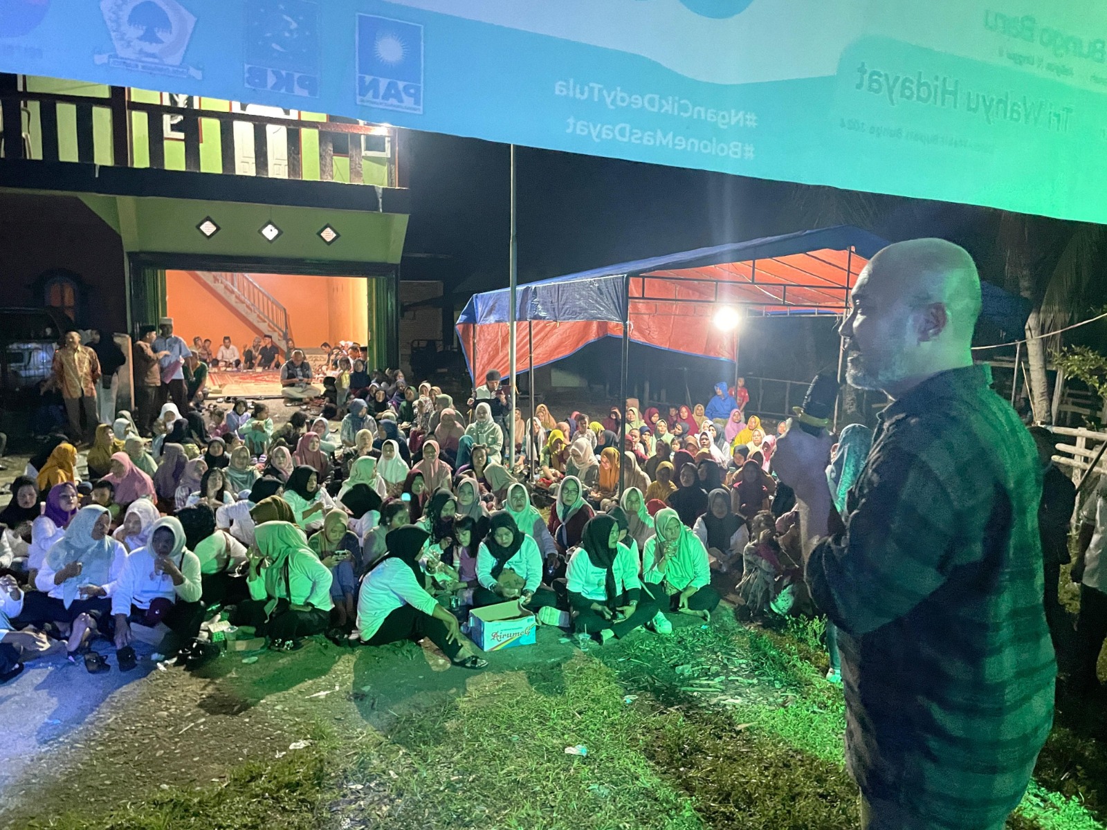 Kabarredaksi.id-Bungo – Calon Bupati Bungo, Dedy Putra terus bergerak dan bersosialisasi bersama ratusan warga di Dusun Tebat, Kecamatan Muko-muko Bathin VII, Selasa (1/10/2024) malam.