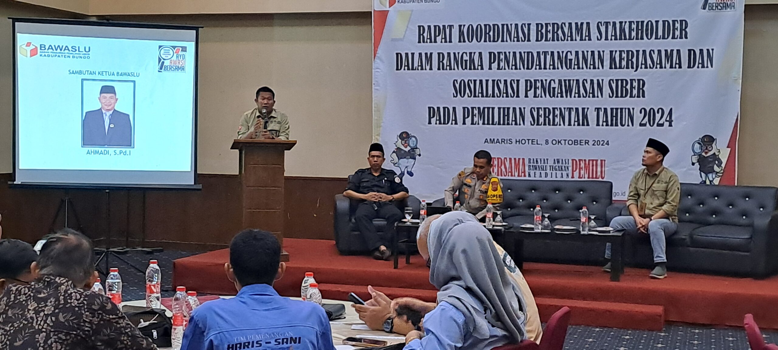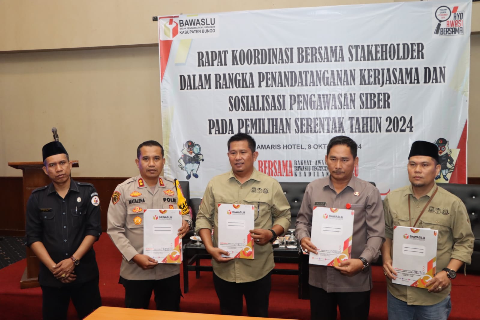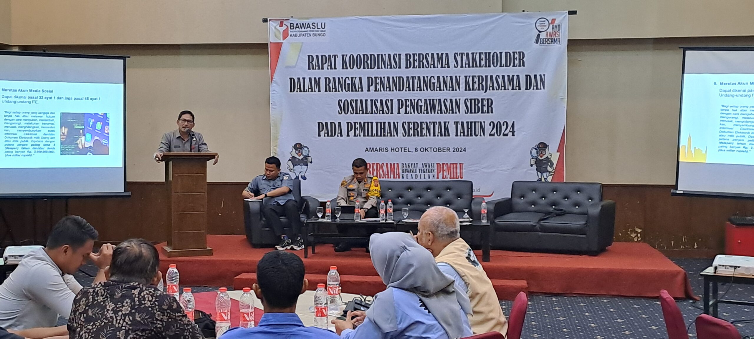 Bawaslu Bungo Buka Rakor Bersama Stakeholder Dalam Rangka Penandatanganan Kerjasama Sosialisasi Pengawasan Siber Pilkada 2024