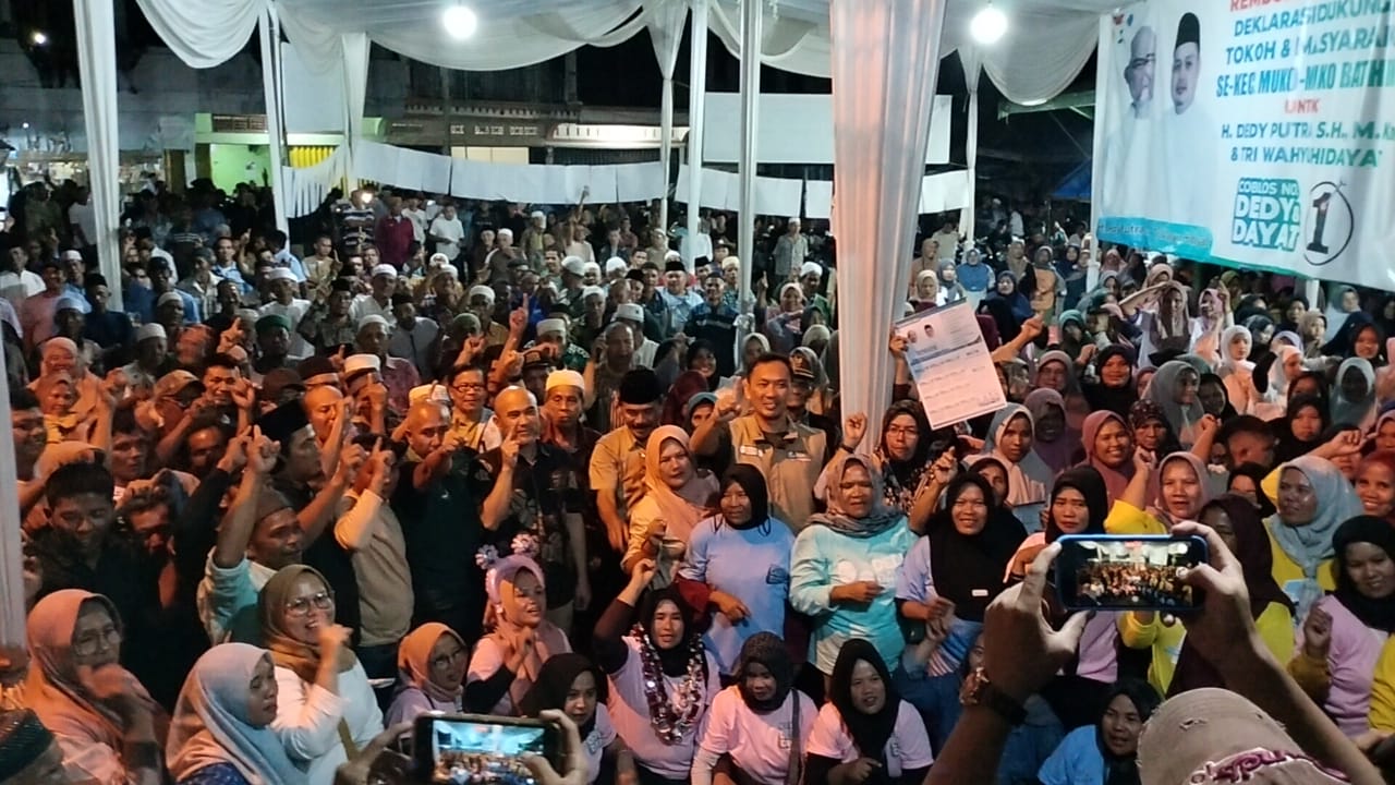 Para tokoh mulai dari tokoh agama, tokoh adat, tokoh pemuda dan ribuan masyarakat Muko-Muko Bathin VII mendeklarasikan dukungan kepada pasangan H Dedy Putra dan Ust Tri Wahyu Hidayat.