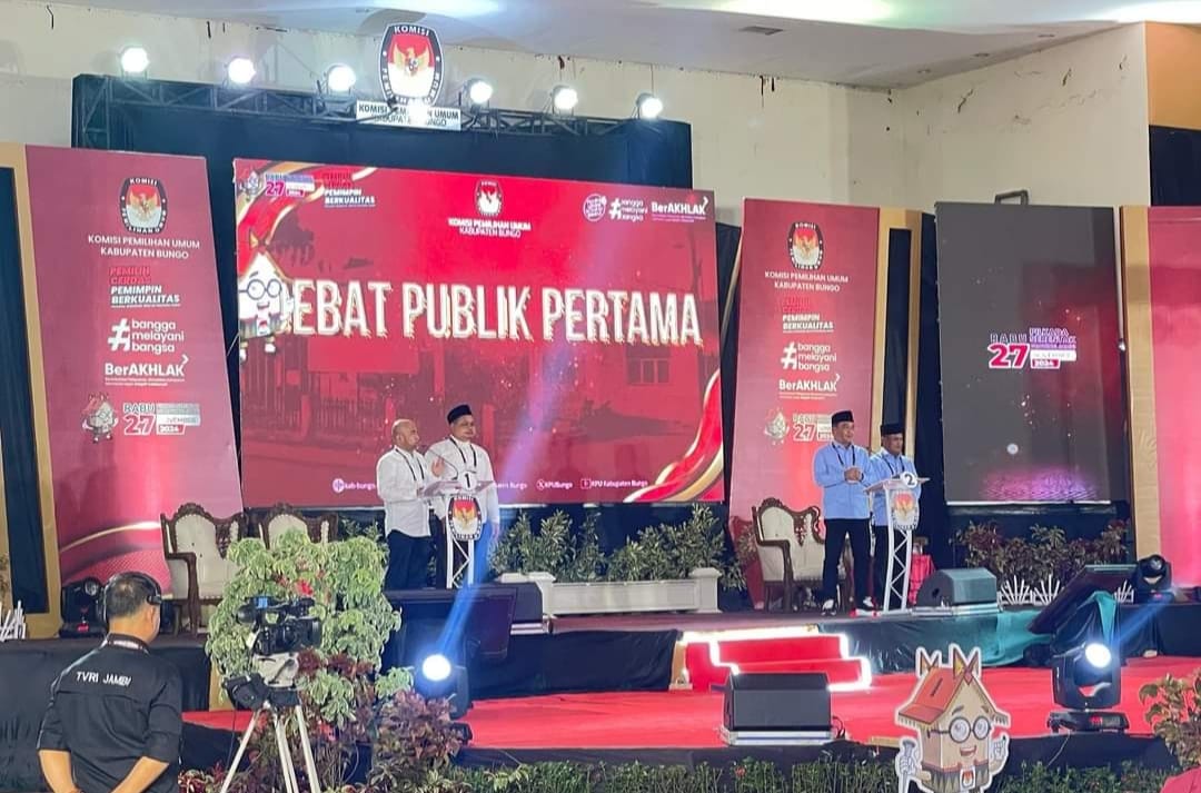 MUARA BUNGO – Komisi Pemilihan Umum Kabupaten Bungo (KPU) menggelar debat perdana Calon Bupati dan Wakil Bupati Bungo. Sabtu 2 Novemver 2024.