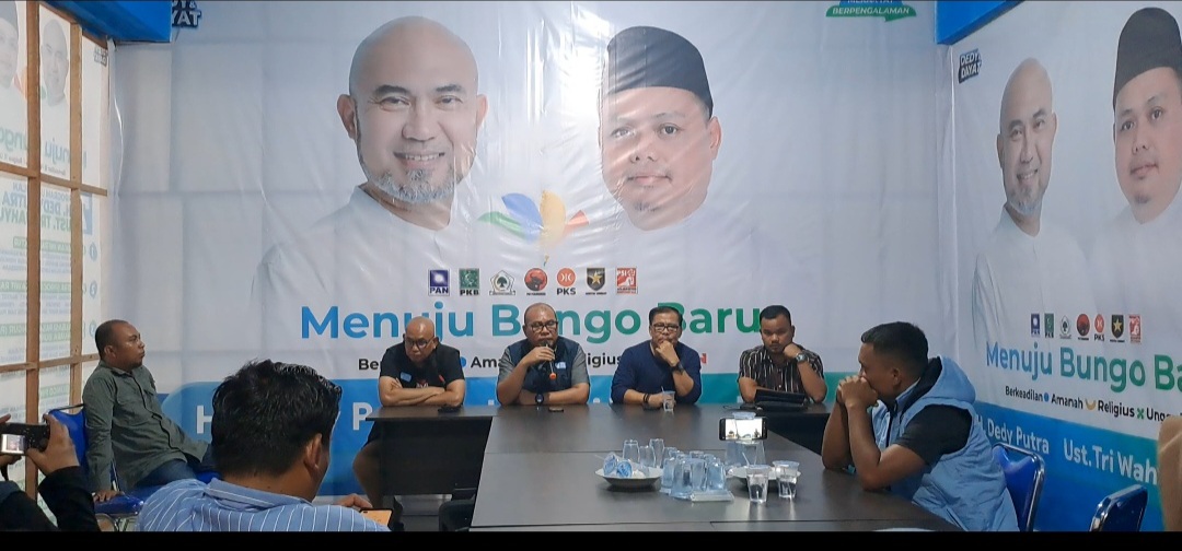 Muara Bungo – Koalisi Pemenangan Dedy-Dayat, Senin 11 November 2024 menggelar jumpa pers terkait banyaknya laporan keterlibatan ASN, RIo dan Perangkat, BPD serta Tim Penggerak PKK dalam poltik praktis.
