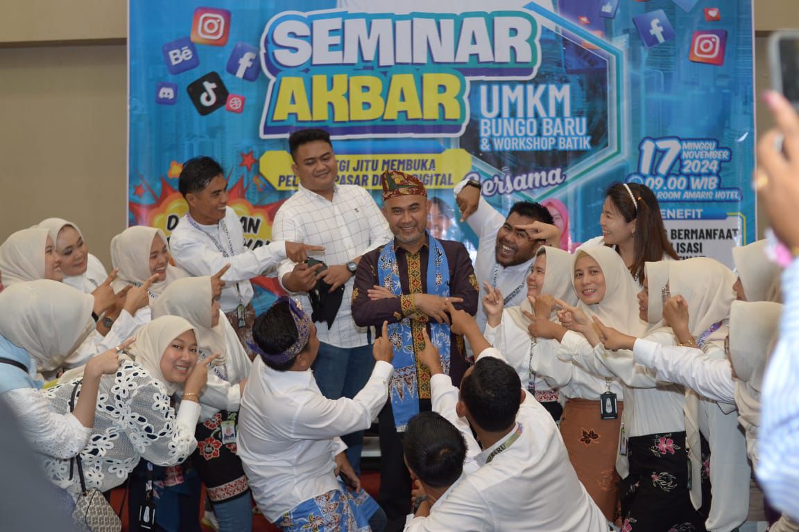 Muara Bungo – Calon Bupati Bungo nomor urut 1, H. Dedy Putra, S.H., M.Kn menghadiri seminar akbar UMKM Bungo Baru dan Workshop Batik di Hotel Amaris Muara Bungo, Minggu (17/11/2024).