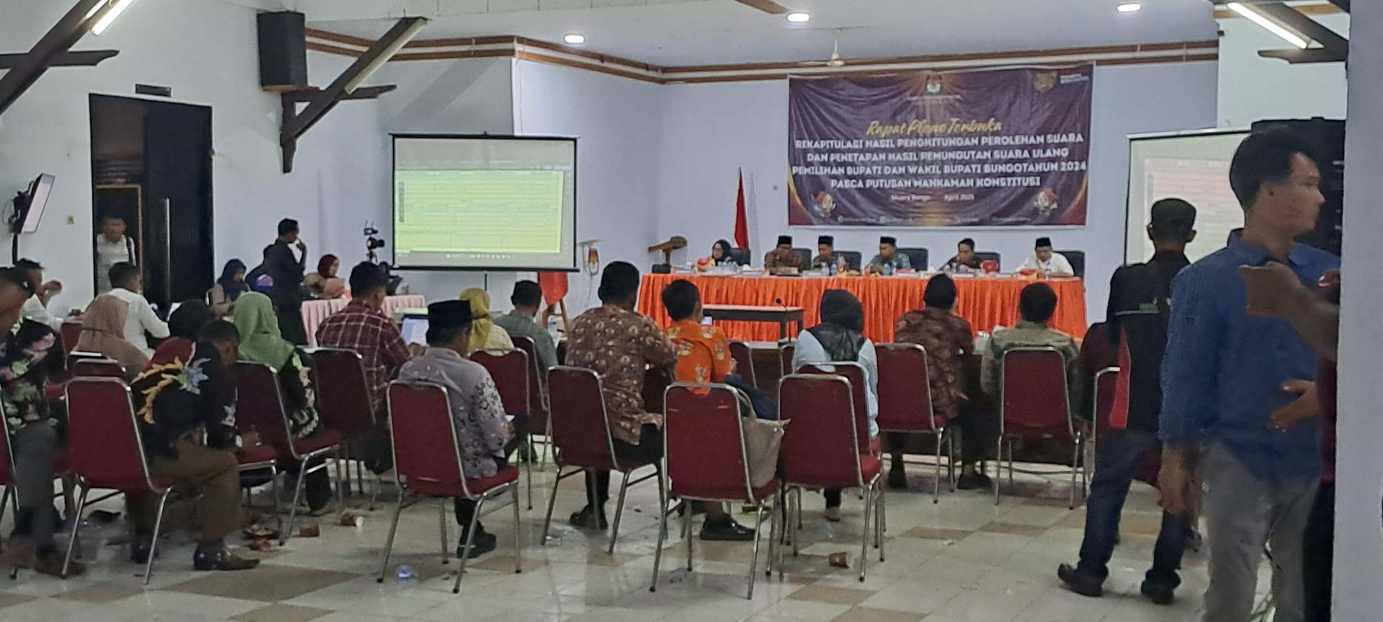 Kabarredaksi.id,- MUARA BUNGO- Komisi Pemilihan Umum (KPU) Kabupaten Bungo melaksanakan Rapat Pleno Rekapitulasi Hasil Perhitungan Perolehan Suara dan Penetapan Hasil Pemungutan Suara Ulang Pasca Putusan Mahkamah Konsitusi (MK), Senin (07/04).