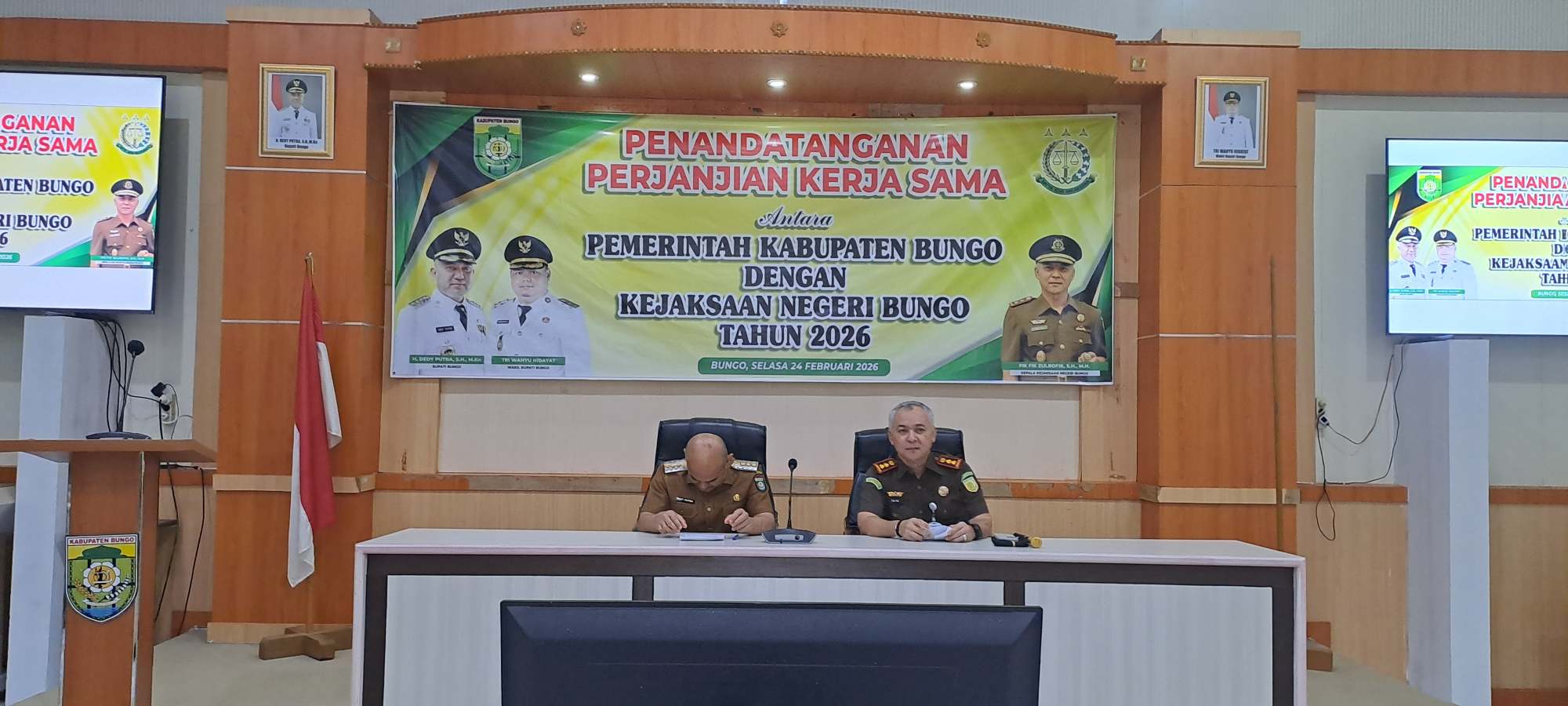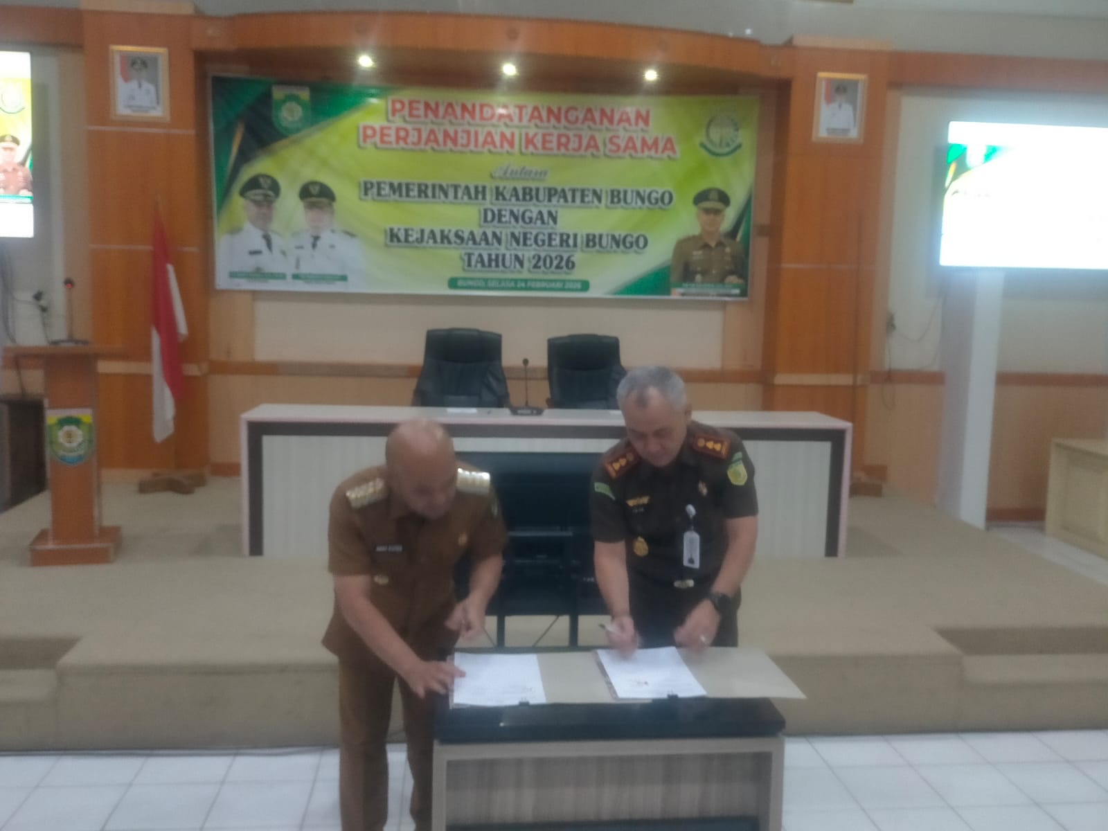 MoU, ditandatangani Bupati Bungo Dedi Putra dan Kepala Kejaksaan Negeri Bungo Fik fik, yang berlangsung di Ruang Aula Kantor Bappeda Bungo, Selasa (24/02/2026 )