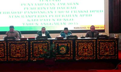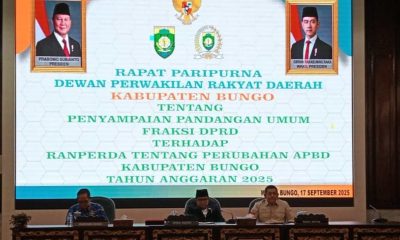 Kabarredaksi.id -Muara Bungo – Dewan Perwakilan Rakyat Daerah (DPRD) Kabupaten Bungo menggelar Rapat Paripurna tentang penyampaian Jawaban Pemerintah Daerah terhadap pandangan umum fraksi-fraksi DPRD atas Rancangan...
