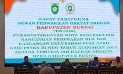 Kabarredaksi.id – Muara Bungo – Dewan Perwakilan Rakyat Daerah (DPRD) Kabupaten Bungo menggelar Rapat Paripurna Penandatanganan Nota Kesepakatan Perubahan KUA dan PPAS APBD Tahun Anggaran 2025,...